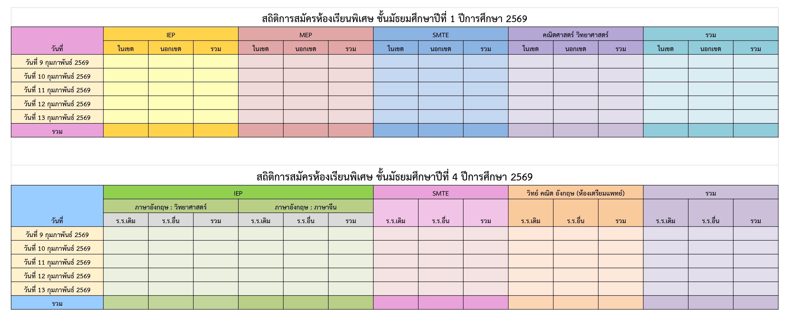 สถิติจำนวนการรับสมัครนักเรียนห้องเรียนพิเศษ