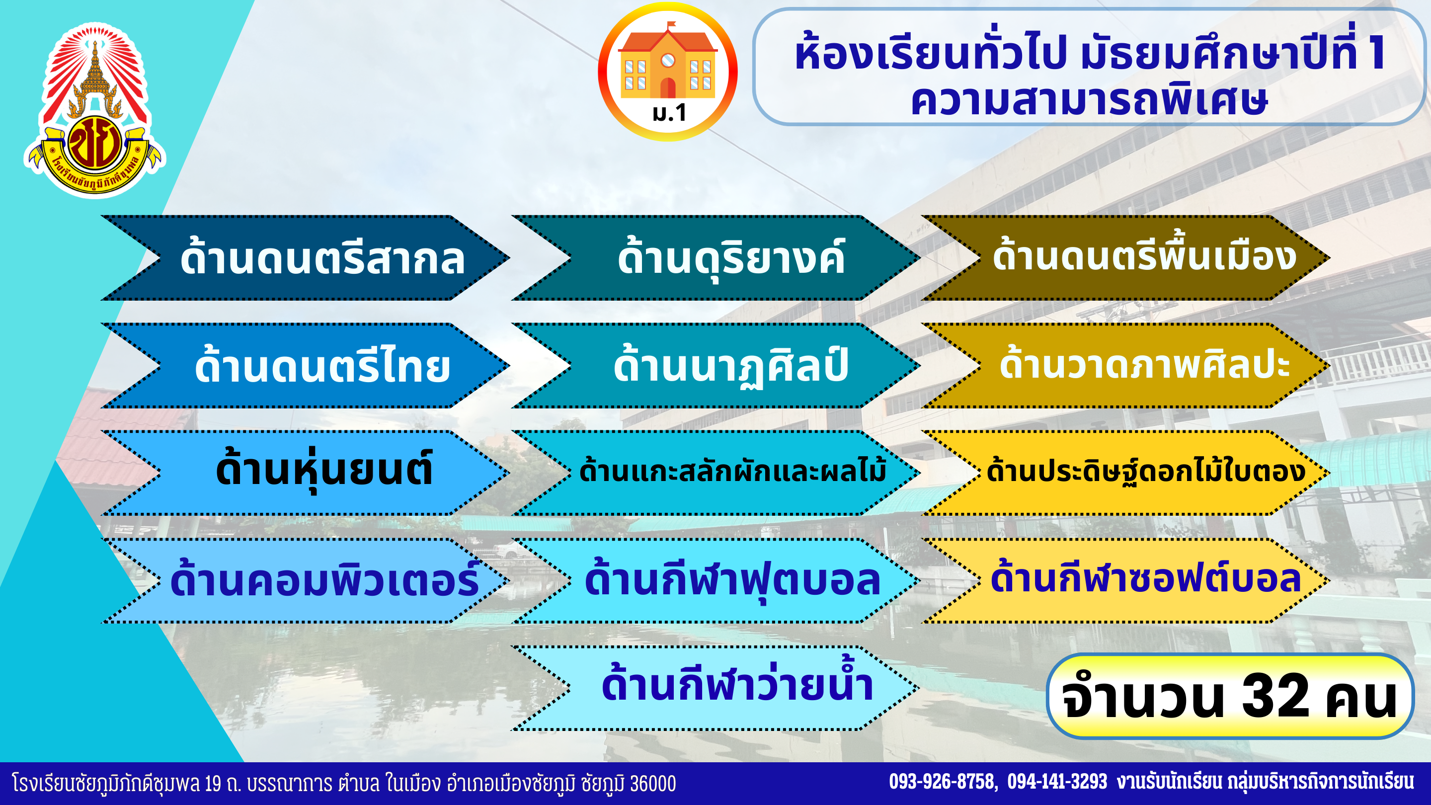 - ประกาศรับสมัครนักเรียนห้องเรียนทั่วไป ม.1