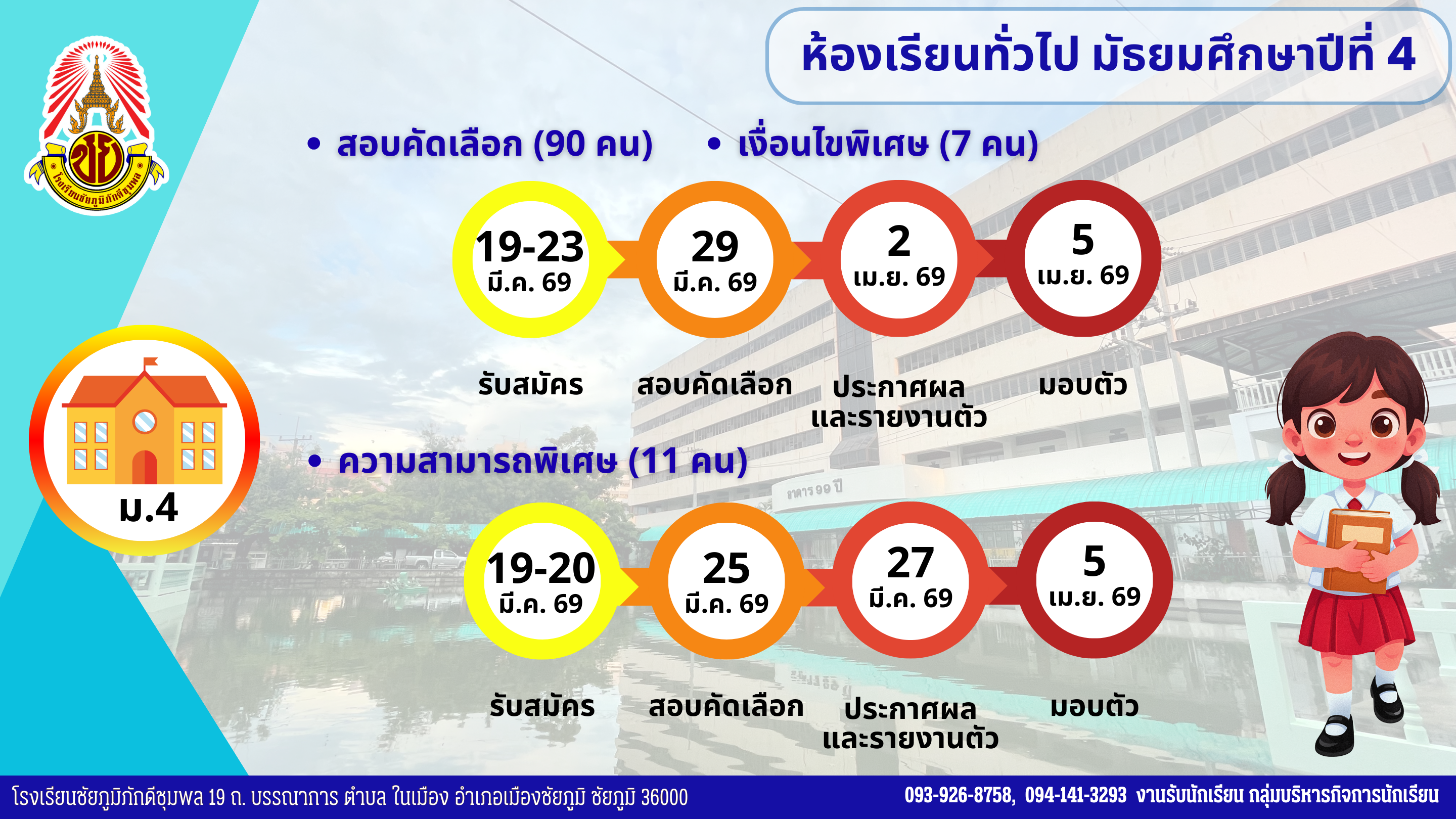 ประกาศรับสมัครห้องเรียนทั่วไป ม.4