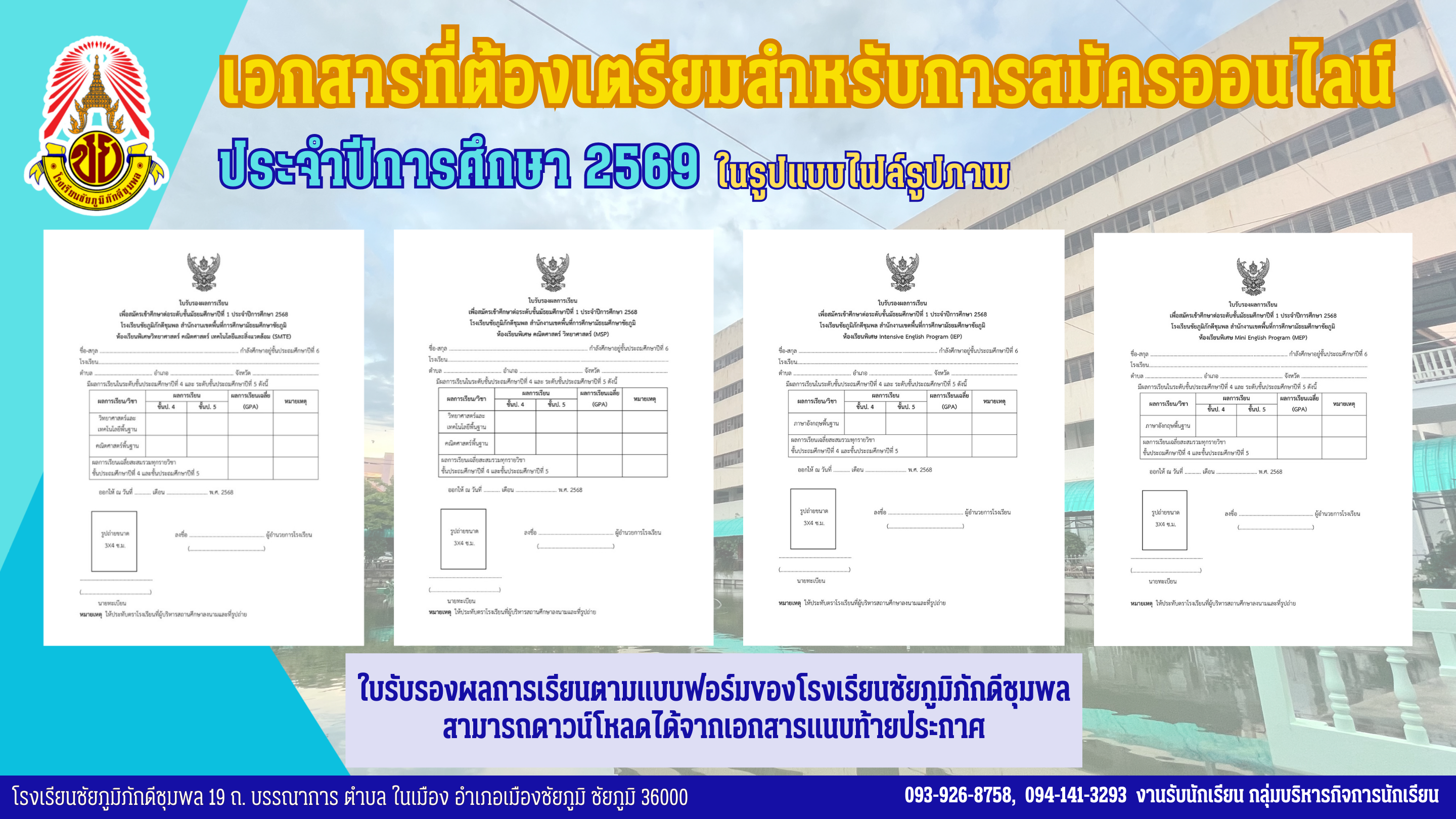 - ประกาศโรงเรียนชัยภูมิภักดีชุมพล เรื่อง การรับนักเรียนชั้นมัธยมศึกษาปีที่ 3 โรงเรียนชัยภูมิภักดีชุมพล(ม.3) เดิม เข้าศึกษาต่อชั้นมัธยมศึกษาปีที่ 4 ประจำปีการศึกษา 2569