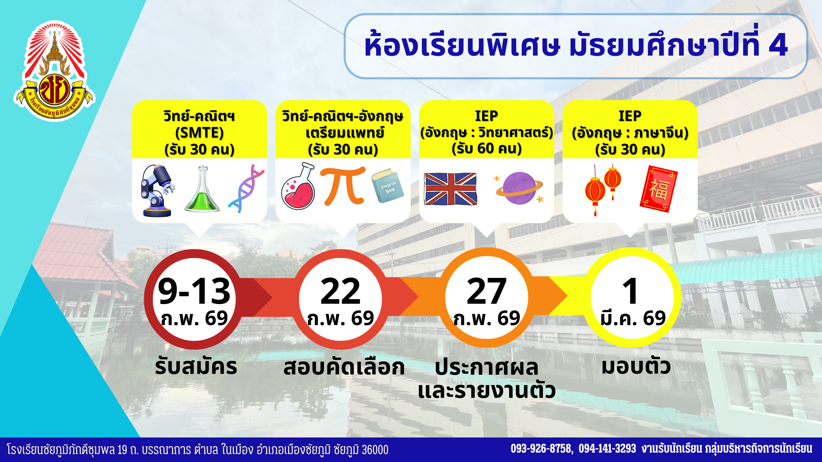 - ประกาศรับสมัครนักเรียนห้องเรียนพิเศษ IEP ม.4