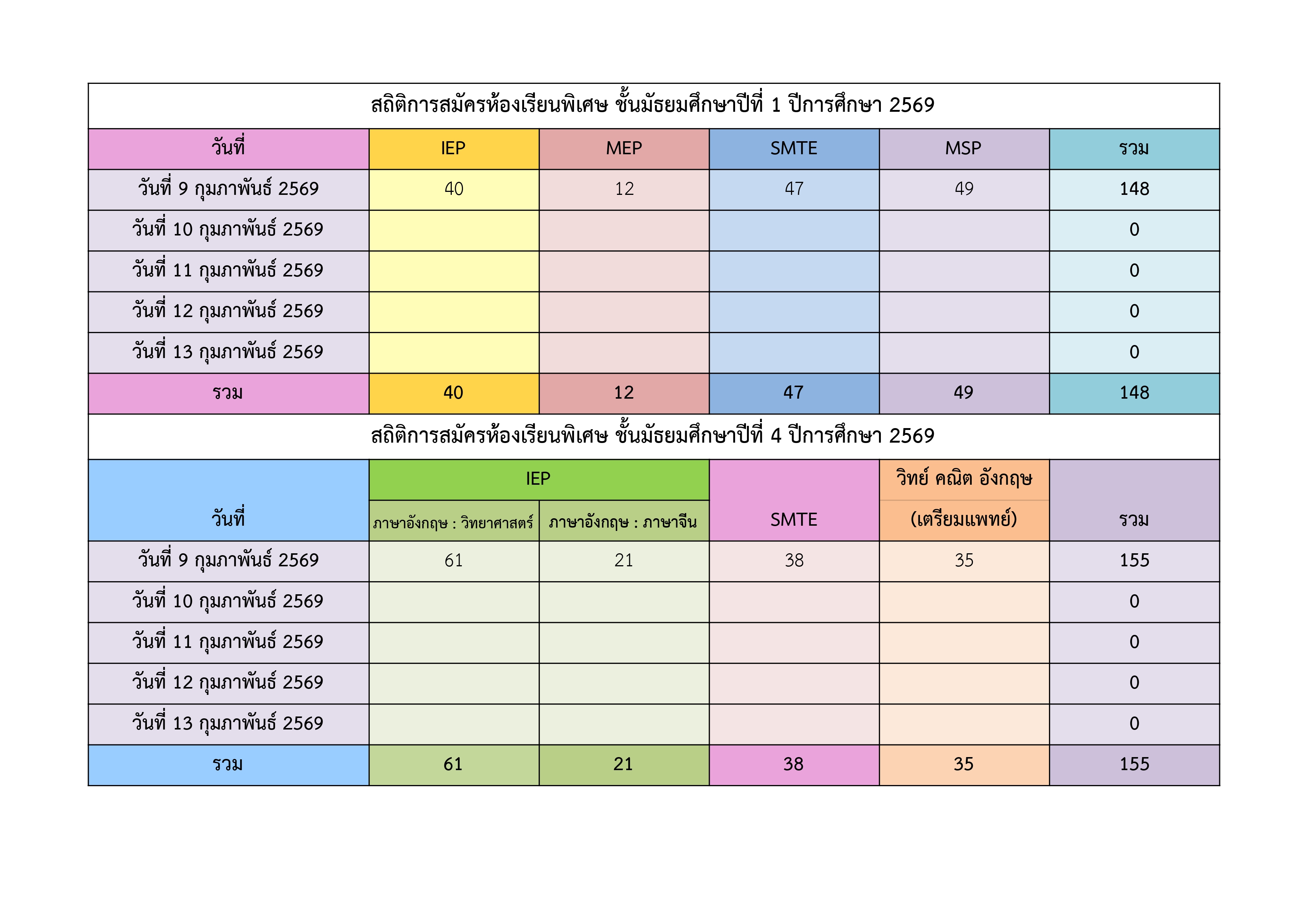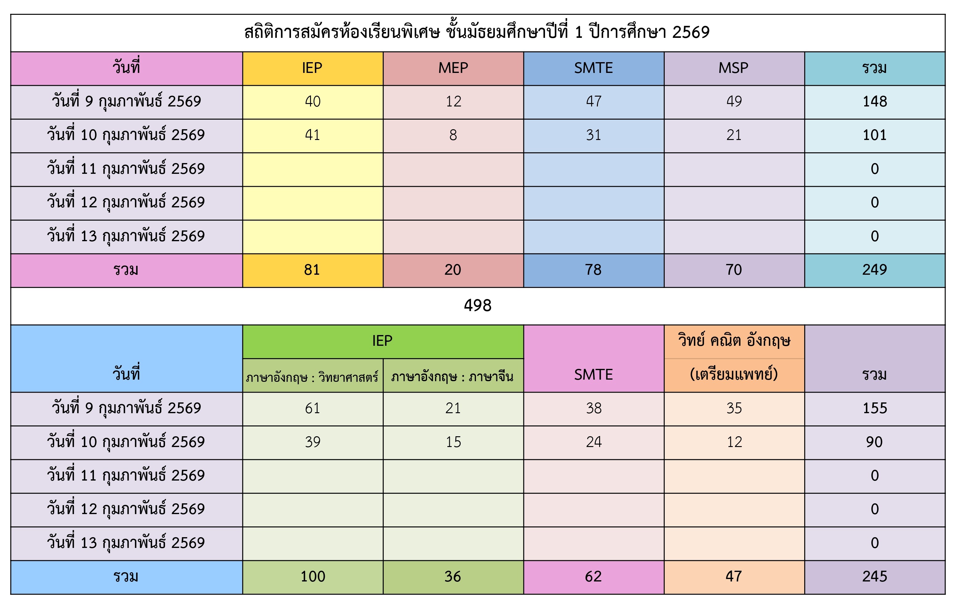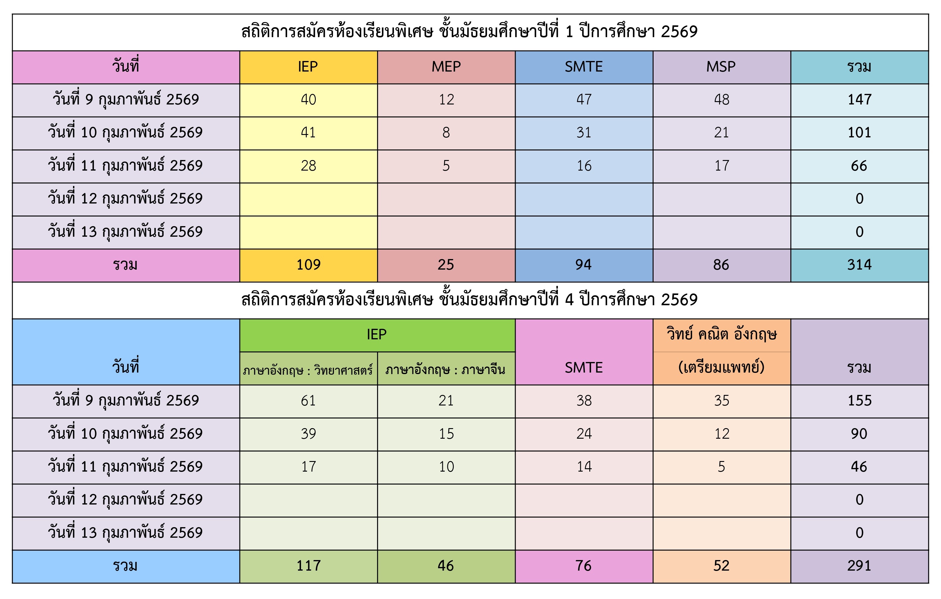 สถิติจำนวนการรับสมัครนักเรียนห้องเรียนพิเศษ