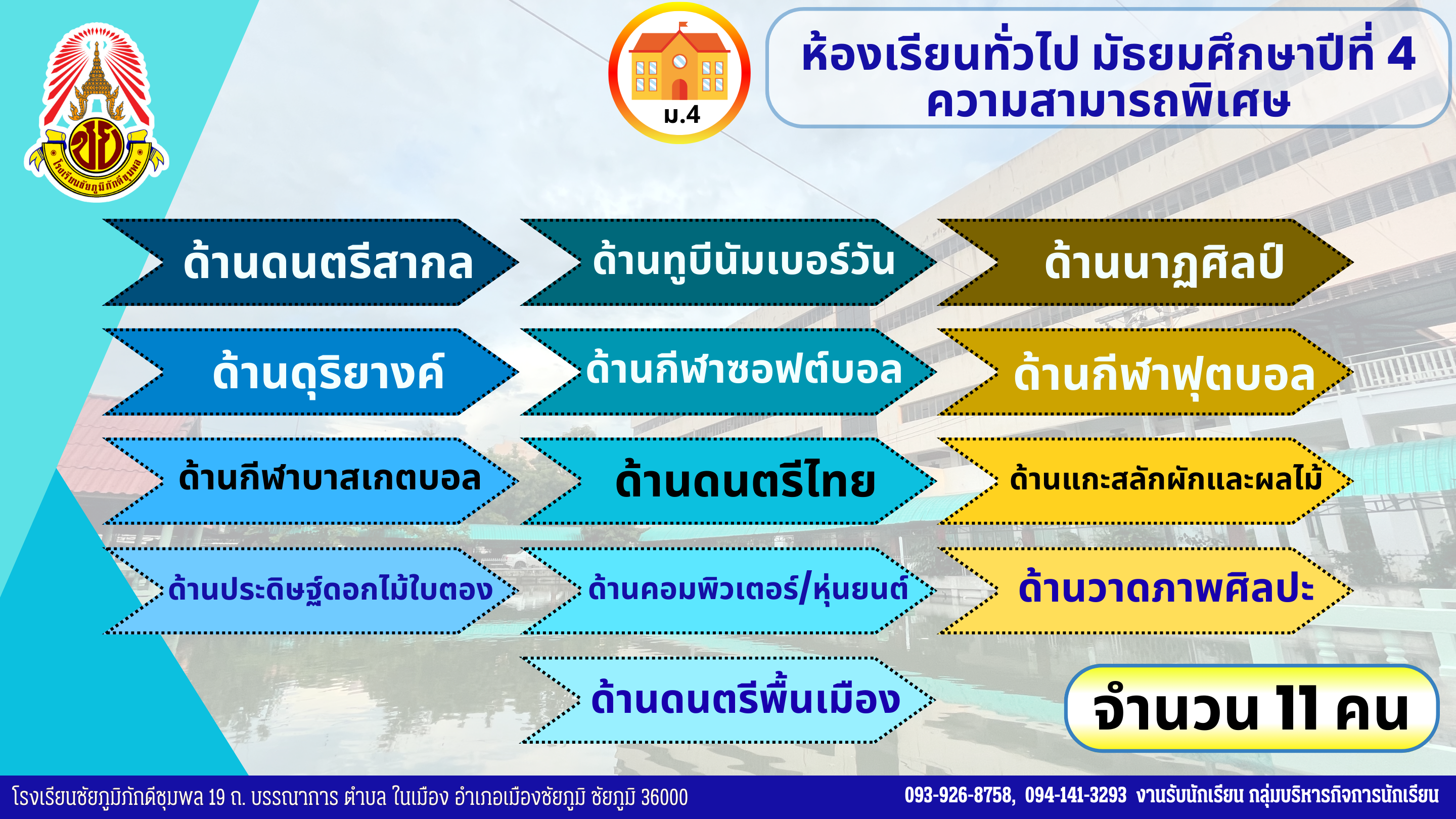 - ประกาศรับสมัครนักเรียนห้องทั่วไป ม.4